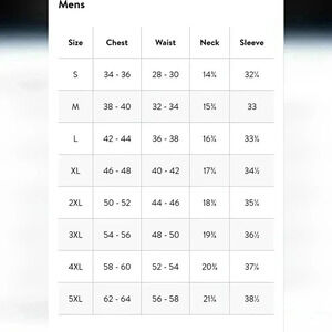 Large see size chart; pictured