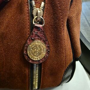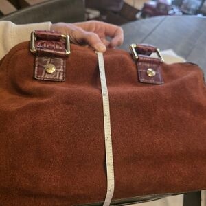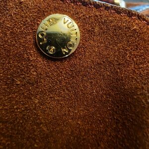 Elegant brown suede tote bag by Louis Vuitton. Features a spacious interior and sturdy handles. clean the suede on front looks like a little wear or needs cleaned good bought cause couldn't find a speedy 30 .I found one why selling this one preloved