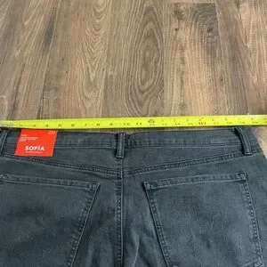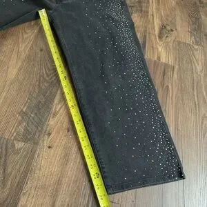 Sofía by Sofia Vergara “Lana” stretch denim jeans in a washed black. Relaxed straight leg with sparkly rhinestone/stud detailing on the front legs. Super cute for a casual glam or night out look.