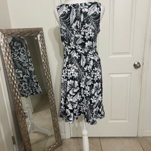 This tropical midi dress features a bold black and white floral design, with dolphin zipper, perfect for any stylish occasion. Please check out the rest of my closet to bundle and save!