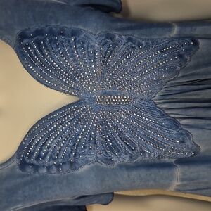 ONE WORLD Blue Embellished Butterfly Fairy Tunic Top