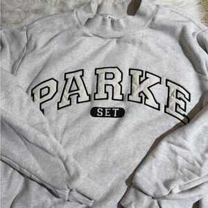 Set active x Parke collab gray mockneck in size xxl. Washed and worn once. Has the Parke varsity letters and set printed graphic