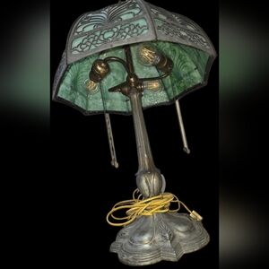 Vintage Bradley & Hubbard Art Nouveau Slag Glass Lamp