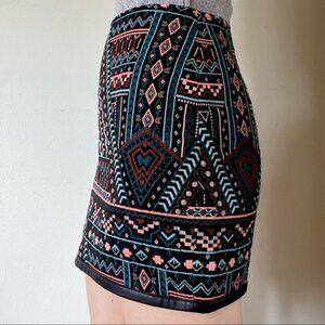 Express Mini Skirt Size 6 Western Boho Pattern Faux Leather Festival
