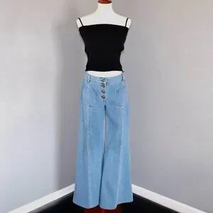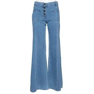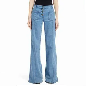 Chloe 6 / F 38 Denim Wide Flare Jeans Bell Bottom Button Fly Patch Pocket