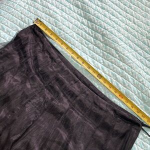 this beautiful piece is one size fits most. It has a tie waist with that split size that is the standard Indian design. As you can see this will fit up to an extra large and although I’m going to list as a one size fits most, it’s probably best on a large frame.The sheer black mash is anchored by a heavy embroidered tribal vibrant colored trim. Ski skirt is lined in an excellent condition.
