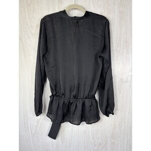 Michael Kors Black Satin Tie Neck Blouse Size 12 Long Sleeve Career Chic