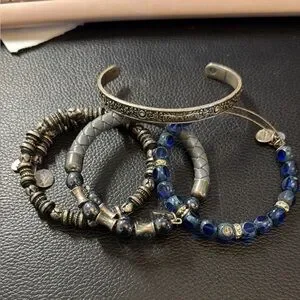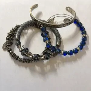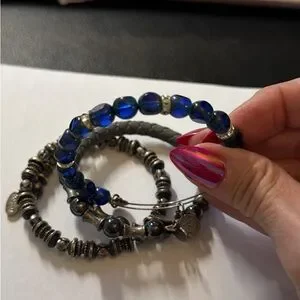 Alex and Ani silver and blue Bracelet Set