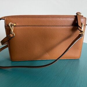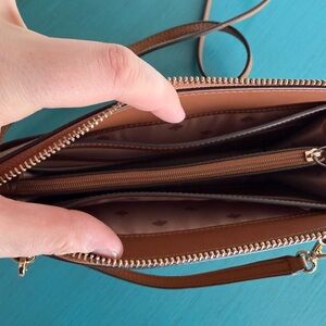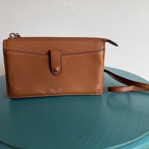 Elegant brown crossbody bag. Features a sleek design. Perfect for everyday use.