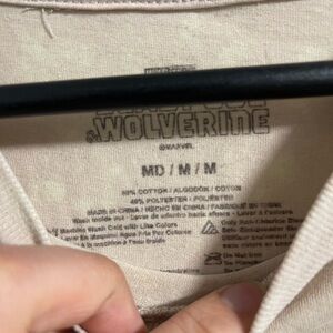 Beige tee with bold Wolverine graphics. Ideal for casual outings.