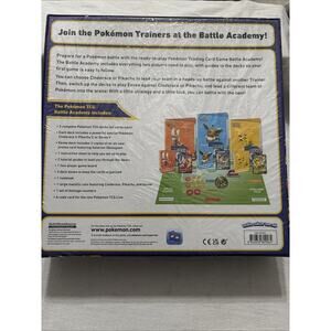 The Pokémon TCG TRADING CARD GAME BATTLE ACADEMY Cinderace V Pikachu V Eevee V CASE is a complete kit that includes 3 decks each with 60 standard-sized cards featuring popular Pokémon characters such as Pikachu, Cinderace, and Eevee. Manufactured by The Pokémon Company in 2022, this set is designed for Pokémon Trading Card Game Battle Academy enthusiasts aged 6 and above. The card stock material ensures durability, while the English language text and Pokémon artwork make it a fun and engaging addition to any collector's deck.