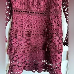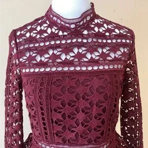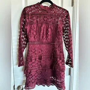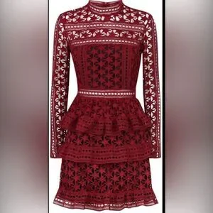 EUC Women’s Burgundy Long Sleeve Bodycon Dress Cut Outs -Tiered Bottom -Size M