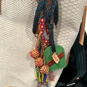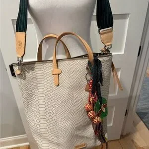 Elevate your style with the Consuela Thunderbird Cream Tote Bag. Featuring a vibrant, colorful strap, this bag combines elegance with a touch of fun. Perfect for any occasion.