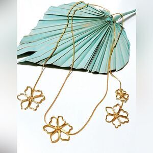 Long wrap around flower necklace in gold tone hardware