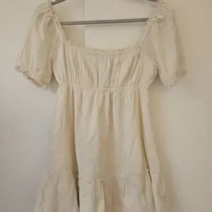 Elegant white dress with ruffle trim. Ideal for stylish occasions.