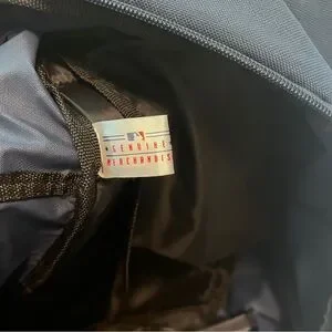Official New York Yankees backpack with classic pinstripe design and MLB Genuine Merchandise branding. In excellent used condition with no notable flaws.