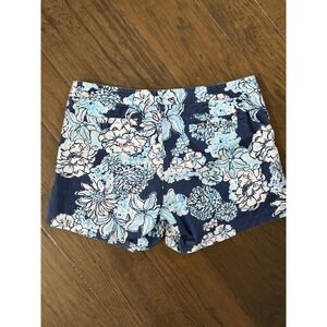 Lilly Pulitzer Callahan Shorts Womens 8 Navy Blue Floral Cotton Stretch Chino