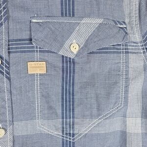 G-Star Raw Originals Plaid Long Sleeve Button Down Dress Shirt. Mens Size Large. Colorway Blues & White. Great Condition 10 Out Of 10. Never Worn. Please see all pictures. 100% Authentic. Feel free to ask questions. Offers welcome. Stylish blue plaid men's shirt perfect for any occasion. Comfortable and versatile, this shirt is a must-have in your wardrobe. Visit my closet for more.