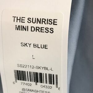 New with Tags Smash & Tess mini dress in women's size Large, Sunrise Mini, Sky Blue. Dress has puffed short sleeve, back zip and is made in a cotton blend with a baby doll Bodice. Coquette, Cottagecore, Prairie, Bohemian, festival styling.