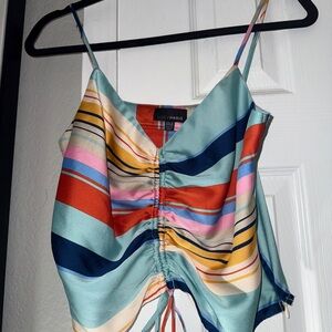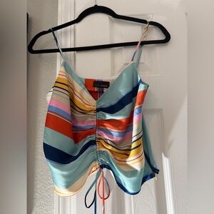 Chic camisole with vibrant stripes. Features a ruched front and adjustable straps. Perfect for casual outings.