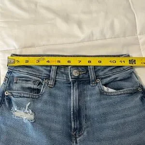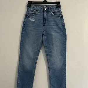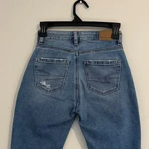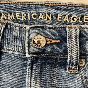 Light blue denim jeans by American Eagle Outfitters. Features button closure and classic stitching.