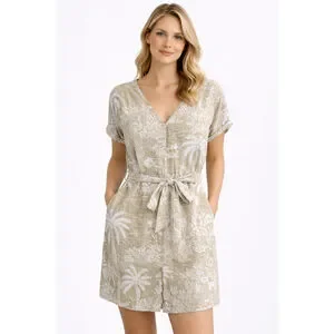 Desmond & Dempsey H&M Linen Blend Belted Tropical Dress XS Resort