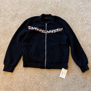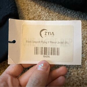 Zyia Black Leopard Flying V Fleece Jacket Size XL NWT, brand new with tags!