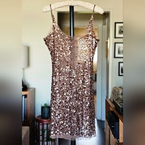 Arden B Y2K Brown Sequin Mini Dress