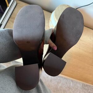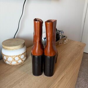 Elevate your look with these striking tan leather platforms. Bold and stylish for any occasion.