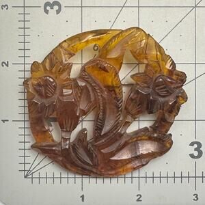 REPAIR antique vintage retro carved apple juice Bakelite large floral brooch