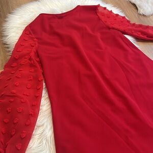 Super chic dress with sheer long sleeves. Dress body is not see through at all. No damages or stains. Pet free, smoke free home.