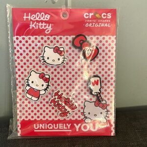 Adorable Hello Kitty Jibbitz charms for CROCS. Features iconic designs in red and white.