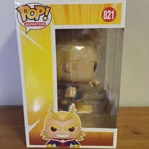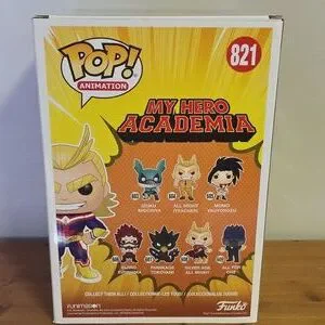 All Might figure from My Hero Academia. Bold design with gold and blue accents. Perfect for collectors. 10" funko glow in the dark