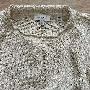 Tags: alc juliana top medium, cream pointelle knit top, designer knit blouse, minimalist luxury, elevated basics, neutral wardrobe staple, chic layering piece, capsule closet essential, modern feminine style, polished casual look