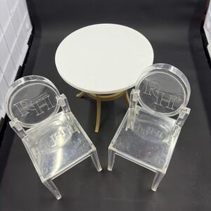 Rainbow High Doll House Kitchen Table White Gold 2 Clear Chairs fits 11" Dolls
