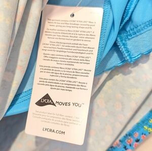 Beautiful Lands’ End two-piece tankini swim set in a vibrant turquoise floral print. Flattering, comfortable, and perfect for pool or beach days!