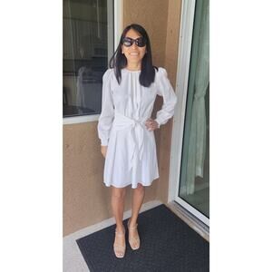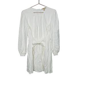 MICHAEL KORS White Long Sleeve Crewneck Linen Tie Front Mini Dress Size Medium