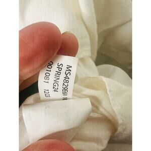 MICHAEL KORS White Long Sleeve Crewneck Linen Tie Front Midi Dress Size Medium. The Michael Kors White Linen Midi Dress is a timeless and effortlessly chic piece, crafted from breathable linen for a lightweight and comfortable feel. Designed with a classic crewneck and long sleeves, this dress balances sophistication with casual elegance. The tie-front detail cinches the waist for a flattering silhouette, while the midi length adds versatility for both daytime and evening wear. In Size Medium, this dress is perfect for warm-weather outings, offering a refined yet relaxed look.