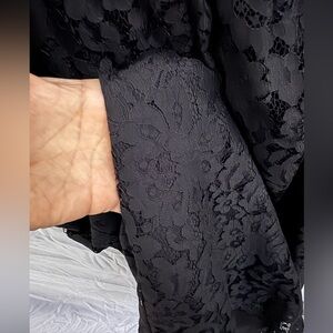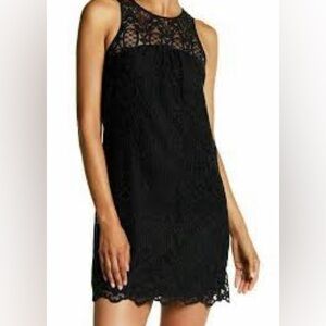 Joie Chic sleeveless black lace dress. Back zipper and keyhole back neck. Sheer lace above bodice and fully lined elsewhere.
