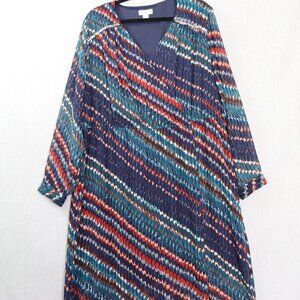 Cato women's plus-size dress in 22/24 featuring a striking diagonal multicolor print in navy, teal, red, and ivory.