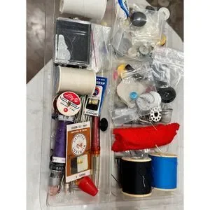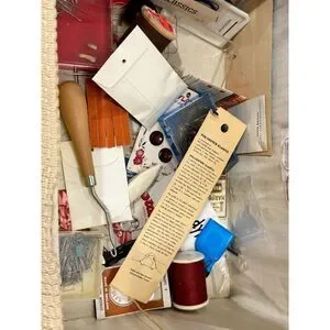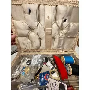 vintage sewing basket, sewing box kit, wicker sewing basket, sewing notions lot, vintage sewing supplies, craft storage box, sewing kit full, retro sewing organizer, sewing collectibles, sewing