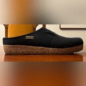 NWOT Haflinger Magic Wool Felt clog slippers 40 navy blue 100% wool