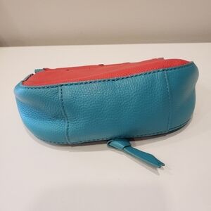 Vera Bradley Watermelon leather crossbody bag in very good condition. Signature Vera Bradley cotton lining. Dimensions: 9" x 6" x 2.5".