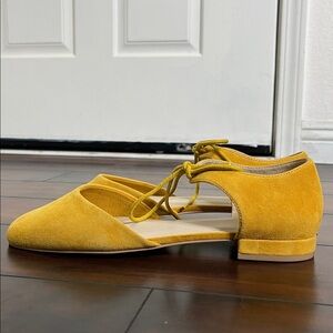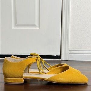 Anthropologie Seychelles Women's Ankle Tie Suede Flats Yellow size 10 New Boho