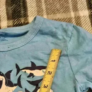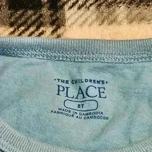 this is a comfortable 100% cotton t-shirt made by a truly trusted company The Childrens Place it has a few hardly noticeable stains that no doubt till a rambunctious little boys storys of adventure