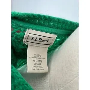 L.L. Bean Cardigan Kelly Green Wool Angora Blend Popcorn Knit Button Front XL