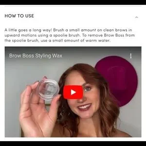 A little goes a long way! Brush a small amount on clean brows in upward motions using a spoolie brush. To remove Brow Boss from the spoolie brush, use a small amount of warm water.