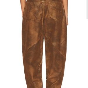 Stylish brown cropped pants. Features unique stitching. Perfect for casual wear.