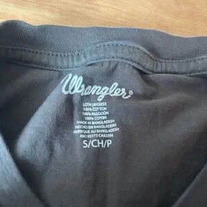 Charcoal tee with desert graphic and Wrangler logo. Soft and casual.