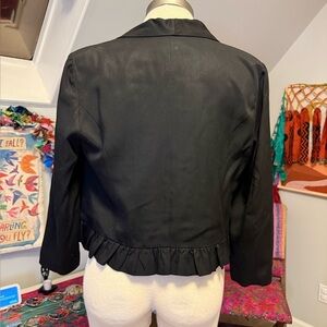 I wore it once to an office Christmas party. Got many compliments. It is very cute style with a ruffle along the bottom edge. . I am just not a blazer girl like I thought I was. I have dry cleaned it, looks barely used and ready to be rehomed.